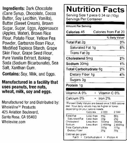Meanwhile, the ingredients in the Girl Scout cookies differ from the manufacturer’s gluten free chocolate chip cookies. See the ingredients and nutritional values in the label pictured below.