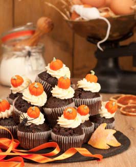 When I make cupcakes I prefer to use natural frosting rather than artificial food coloring, though when I do use coloring, I use Select Tea’s natural food coloring for non-baked/heated food. In the gluten free Halloween cupcakes pictured, decorations were used for color, which can be used year after year. I’ve listed several links to different cupcake and cake recipe, along with frosting choices. Enjoy and be creative!
