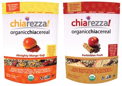 While at the Natural Products Expo West trade show, I stumbled upon ChiaRezza!, the makers of an amazingly healthy and organic gluten free vegan cereal. They contain chia and hemp seeds, and a whole lot more! Not only are they gluten free, but certified by CSA (Celiac Sprue Association) for under 5 ppm (parts per million) gluten, certified vegan, certified Kosher, Non-GMO verified. In addition, their manufacturing lines are free of the top 8 allergens, as well as corn. The great part is that they are delicious, and extremely healthy for you!