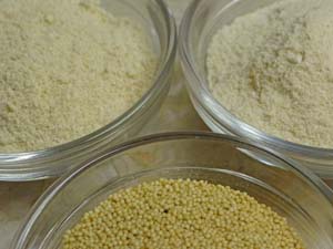 Millet: Though KitchenAid suggests toasting millet in a dry skillet prior to milling, I skipped this step in the photo below. Millet flour also may be used in a 40% to 60% starch ratio.