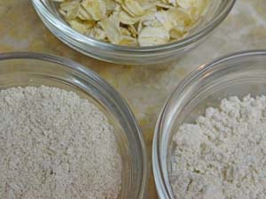 Oats: Though the oats must be hulled before grinding, rolled gluten free oats may be used. Oats may be used in gluten free recipes up to 60% to 40% starch ratio.