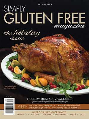 Her enthusiasm made me even more eager to open it up myself, after she departed. When I did, I was also impressed. Not only was a Thanksgiving menu provided, but there were several choices: 3 main traditional entrees, several sides, desserts, a crock pot/slow cooker entree recipe, and more. The recipes were so good, I could easily use them this year, if I were cooking, saving a lot of time and headaches. The only thing that was not included was a recipe for rolls (that was the only thing I felt the entire magazine was missing, which says a lot.) However, soon you will be able to obtain additional gluten free recipes, as well as many other goodies, on their site Simply Gluten Free Magazine.